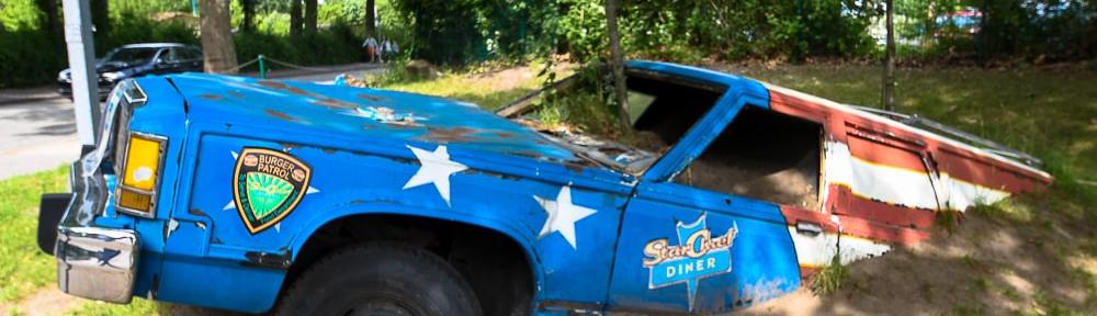 Der blaue, amerikanischer Straßenkreuzer Ford Mustang – ausgemustert als „Eyecatcher“ für eine Burger Braterei. 🙂 Sorgt sicherlich für Aufsehen, aber ich würde den Kleinen lieber auf der Straße sehen. 😉